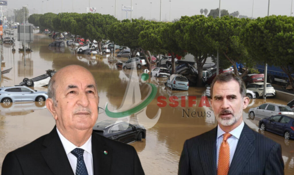 بعث رئيس الجمهورية، السيد عبد المجيد تبون، برسالة تعزية إلى صاحب الجلالة فيليبي السادس ملك إسبانيا إثر الفيضانات المدمرة التي مست عدة أقاليم بمملكة إسبانيا الصديقة وخلفت حصيلة مفجعة من الضحايا والخسائر المادية الكارثية حسبما أفاد به بيان من رئاسة الجمهورية