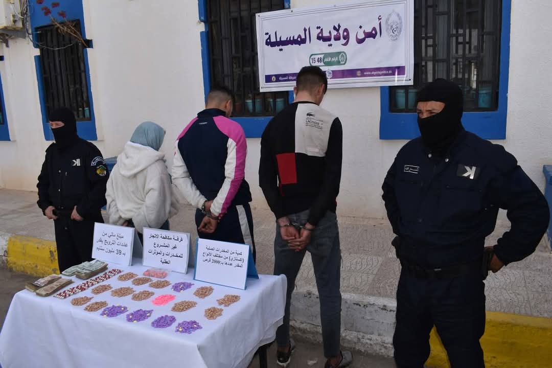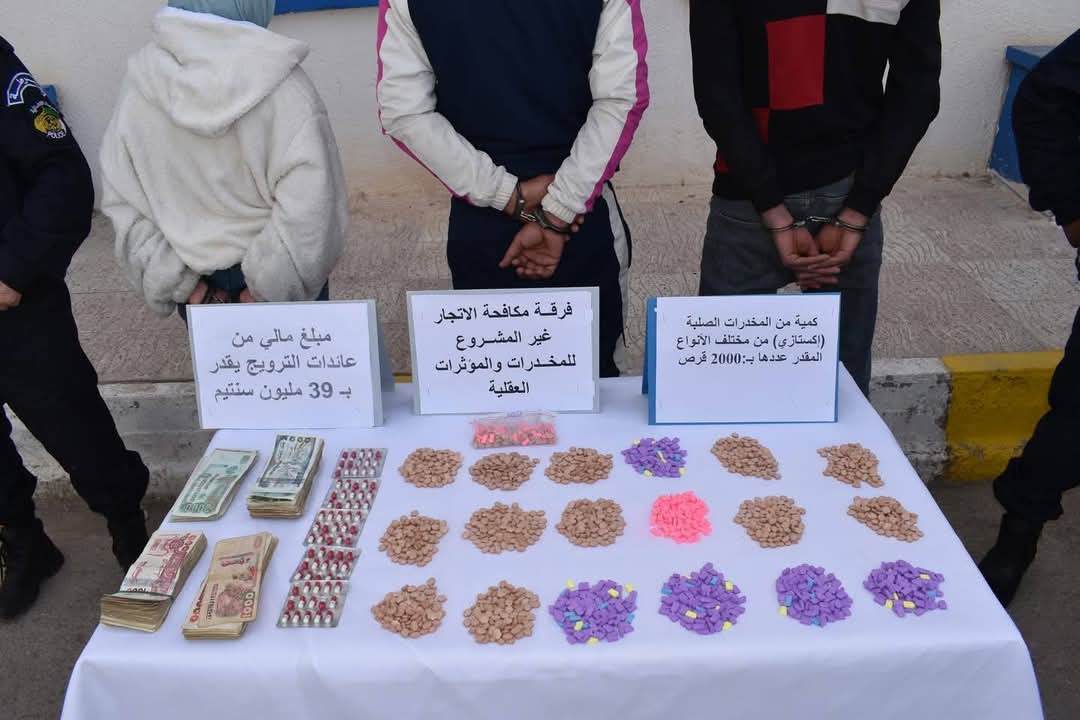 فرقةمكافحةالاتجارغيرالمشروع_بالمخدرات تحجز 2000 قرص من المخدرات الصلبة (إكستازي)، 82 كبسولة مهلوسة من نوع بريقابالين 300 ملغ، بالإضافة إلى مبلغ مالي يقدر بـ 39 مليون سنتيم من عائدات الترويج، مع توقيف 03 أشخاص من بينهم فتاة يمتهنون المتاجرة بهذه السموم.