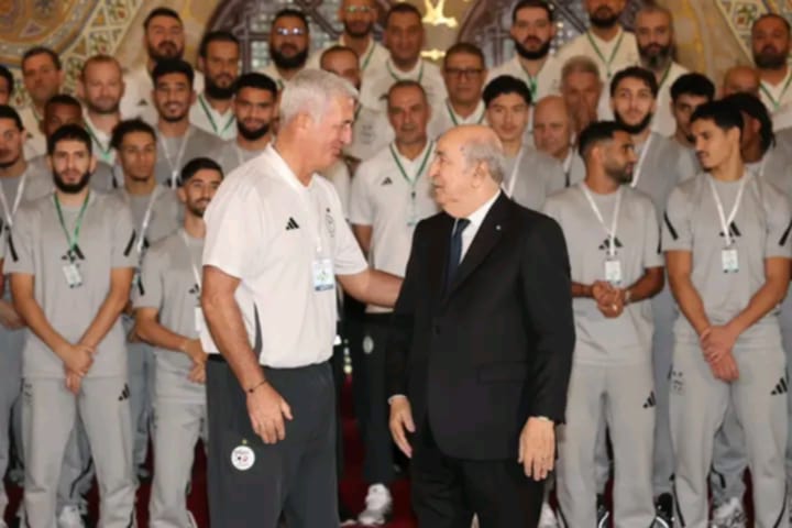 حفل استقبال فِرَق من النخبة الرياضية من طرف ريس الجمهورية الجزائرية بقصر الشعب :