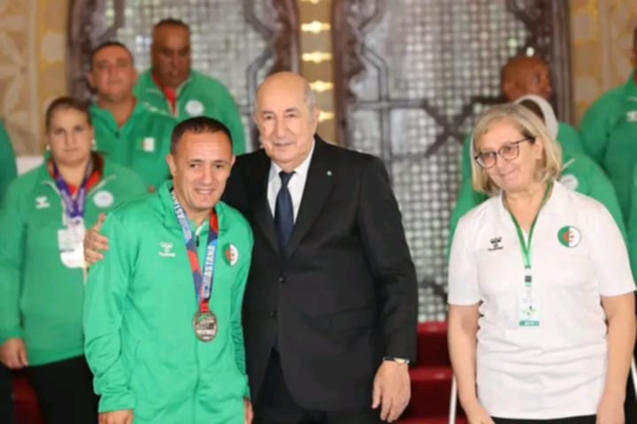 رئيس أشرف السيد رئيس الجمهورية السيد عبد المجيد تبون اليوم على حفل استقبال فِرَق من النخبة الرياضية الوطنية التي حققت تتويجات كبيرة ومشرفة للجزائر .وتكريمهم بقصر الشعب بالعاصمة