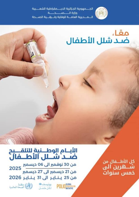 أعلنت وزارة الصحة، اليوم الخميس، عن تمديد حملة التلقيح ضد شلل الأطفال إلى غاية 8 ديسمبر الجاري، وذلك بهدف تمكين أكبر عدد ممكن من الأطفال من الاستفادة من هذا الإجراء الوقائي.
